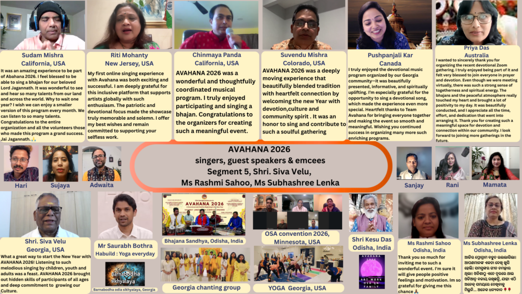 The heart of AVAHANA 2026 was its Bhajana Sandhya, featuring guest singers from Odisha: Jagabandhu Muduli, Soumyasree & team. Their soulful renditions brought the richness of Odia musical heritage to a global audience.